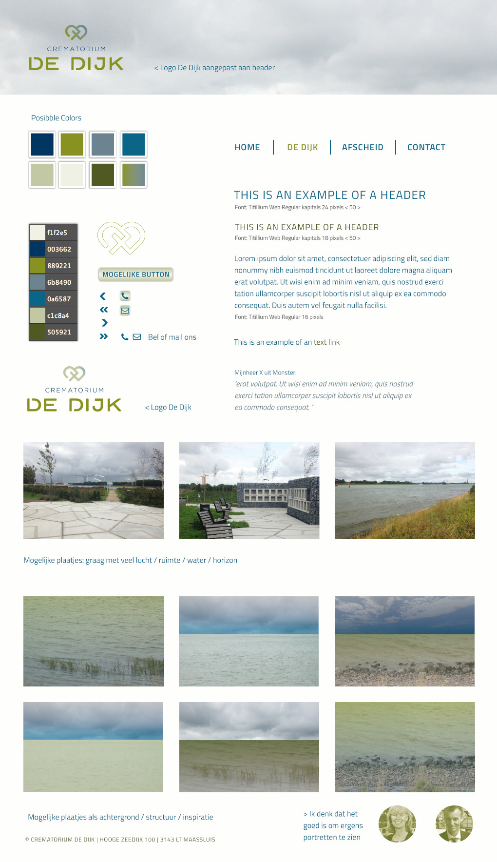 Crematorium De Dijk is een nieuw crematorium in Maassluis. De unieke ligging, aan de nieuwe waterweg, en de kleinschaligheid zijn tot uitdrukking gekomen in de huisstijl. De website wordt gebouwd door Bas den Hoed van mezamedia.nl