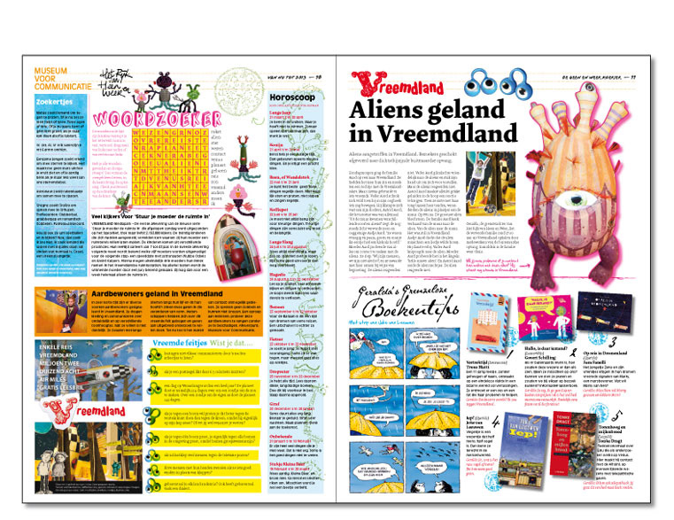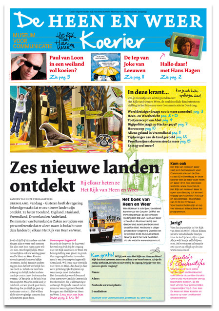 De 'Heen en Weer Koerier': een onafhankelijk dagblad dat eenmalig verschijnt bij de tentoonstelling Het Rijk van Heen en Weer in het Museum van Communicatie. Vol met verhalen, puzzels, spelletjes, en tekeningen en strips.